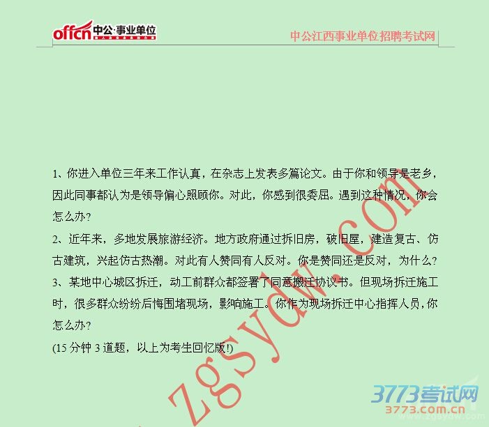 [图文]2014年江西鹰潭市事业单位招聘面试真题(2015年1月17日)
