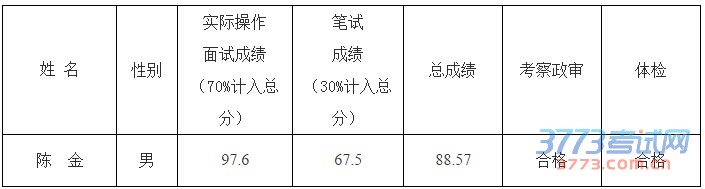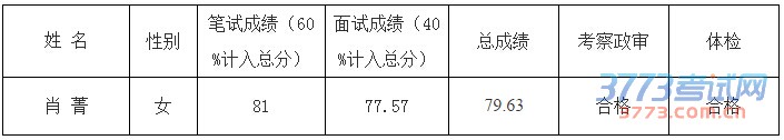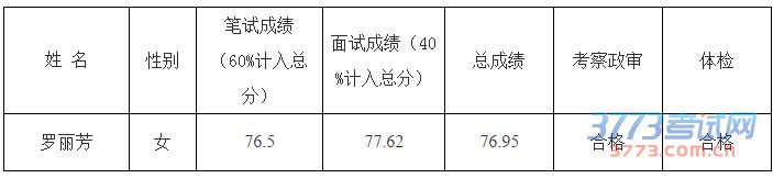 根据《赣州市民政局下属事业单位公开招聘工作人员实施方案》有关要求, 在市人力资源和社会保障局的指导下,经过公开报名、资格审查、笔试、面试、考察政审、体检、递补等程序,现确定以下3名同志为拟录用人员,现予公示。