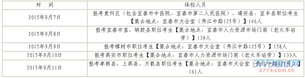 [图文]2015年江西宜春市事业单位招聘工作人员入闱体检人员公告