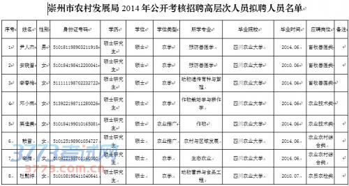 附:崇州市农村发展局2014年考核招聘高层次人才拟聘人员名单。