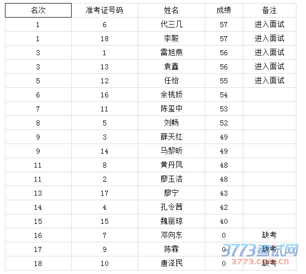 根据中共雅安市委组织部、雅安市人力资源和社会保障局《关于雅安市2015年公开考核招聘事业单位高学历和急需专业人员的公告》相关规定,我局组织的笔试工作已经结束。现将笔试成绩及进入面试人员名单公示如下,具体面试时间另行电话通知。