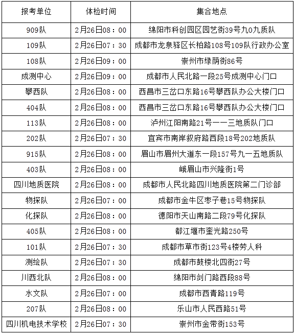 2015年12月四川省地质矿产勘查开发局直属事业单位招聘工体检名单