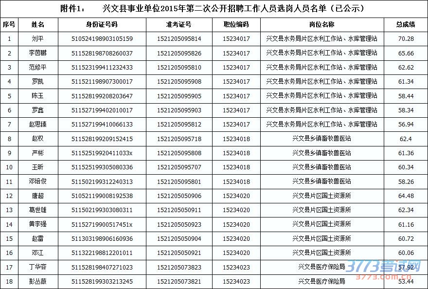 [组图]2015四川宜宾市兴文县第二次招聘人员选岗及办理聘用手续通知(其他系统)
