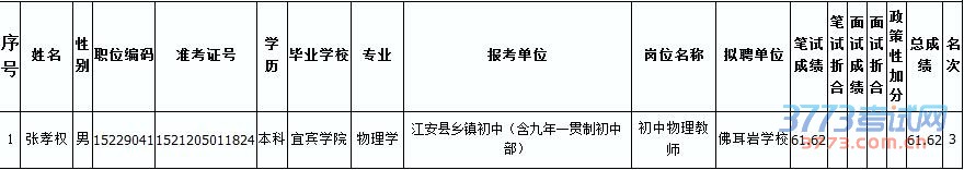 根据《宜宾市2015年第二次公开招聘事业单位工作人员的公告》的规定,现将张孝权同志予以公示。