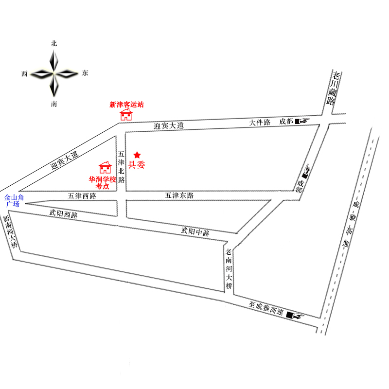 [图文]新津县2009年事业单位公招考试考点路线示意图