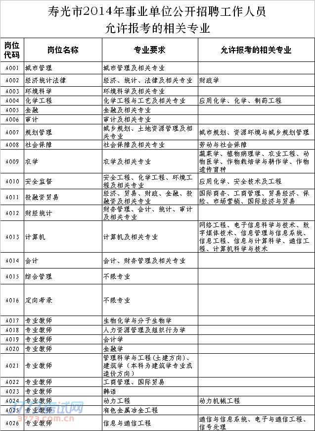 [图文]2014山东潍坊寿光事业单位招聘允许报考相关专业