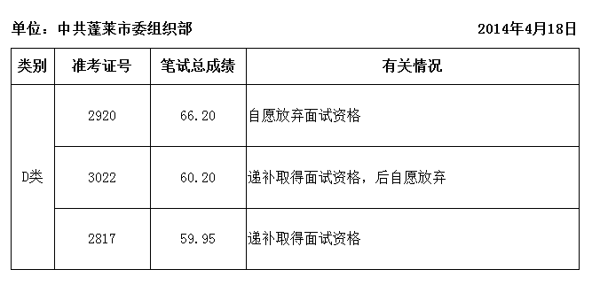 [图文]2014山东烟台蓬莱市考选应届优秀毕业生放弃面试资格及递补名单公示(二)