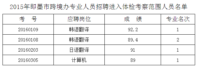 附:2015年即墨市跨境办专业人员招聘进入体检考察范围人员名单
