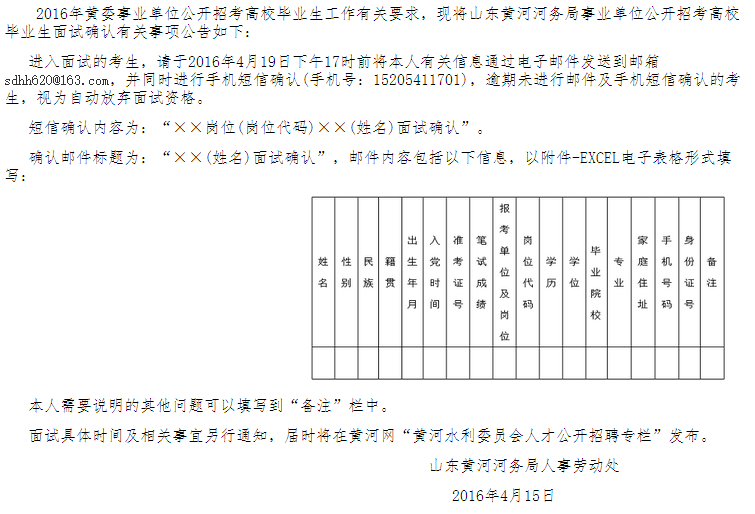 [图文]2016山东黄河河务局事业单位招考高校毕业生面试确认公告