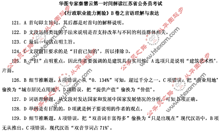 [图文]江苏省2009年公务员行测B卷真题之言语理解解析