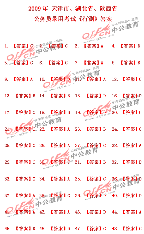 [组图]2009年天津湖北陕西公务员行测试题答案