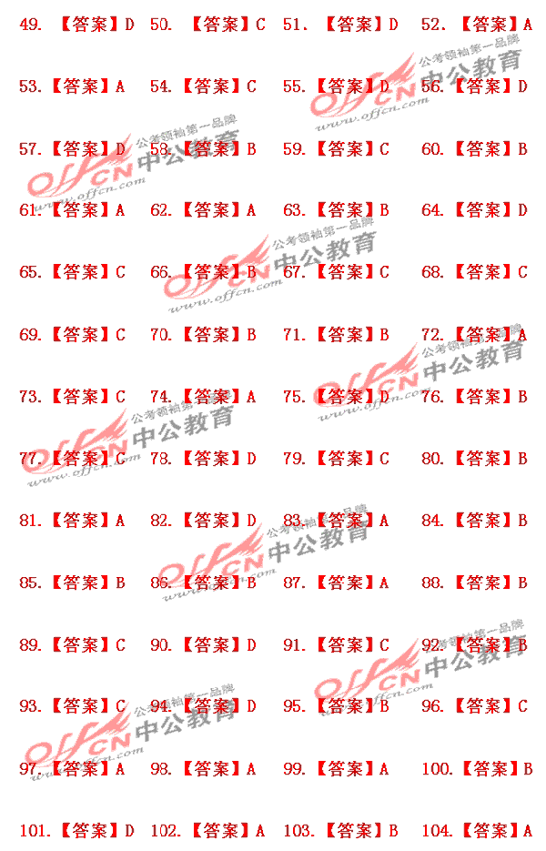 [组图]2009年天津湖北陕西公务员行测试题答案