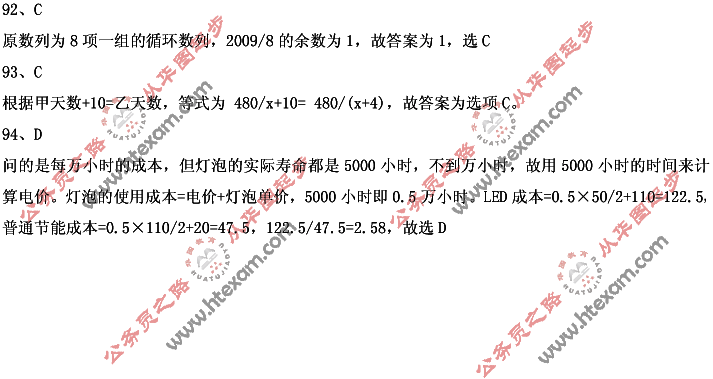[组图]2009年海南辽宁公务员行测数量关系试题答案