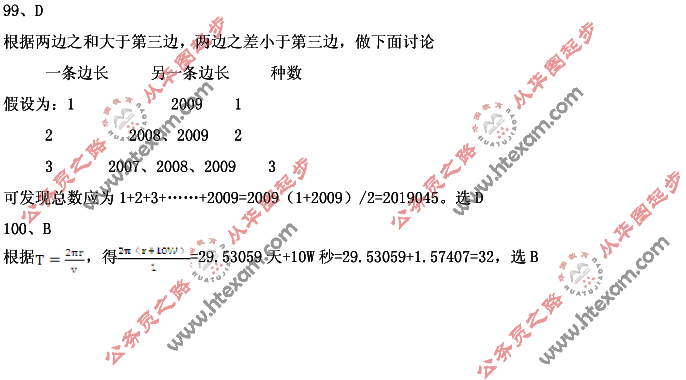 [组图]2009年海南辽宁公务员行测数量关系试题答案