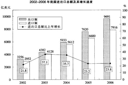 1.2002~2006年,我国的贸易顺差额(出口额—进口额)最小的年份是( )