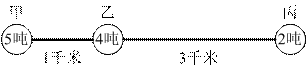 【例7】某企业有甲、乙、丙三个仓库,且都在一条直线上,之间分别相距1千米、3千米,三个仓库里面分别存放货物5吨、4吨、2吨。如果把所有的货物集中到一个仓库,每吨货物每千米运费是90元,请问把货物放在哪个仓库最省钱?( )【2008年安徽省公务员考试行政职业能力测验真题-15题】
