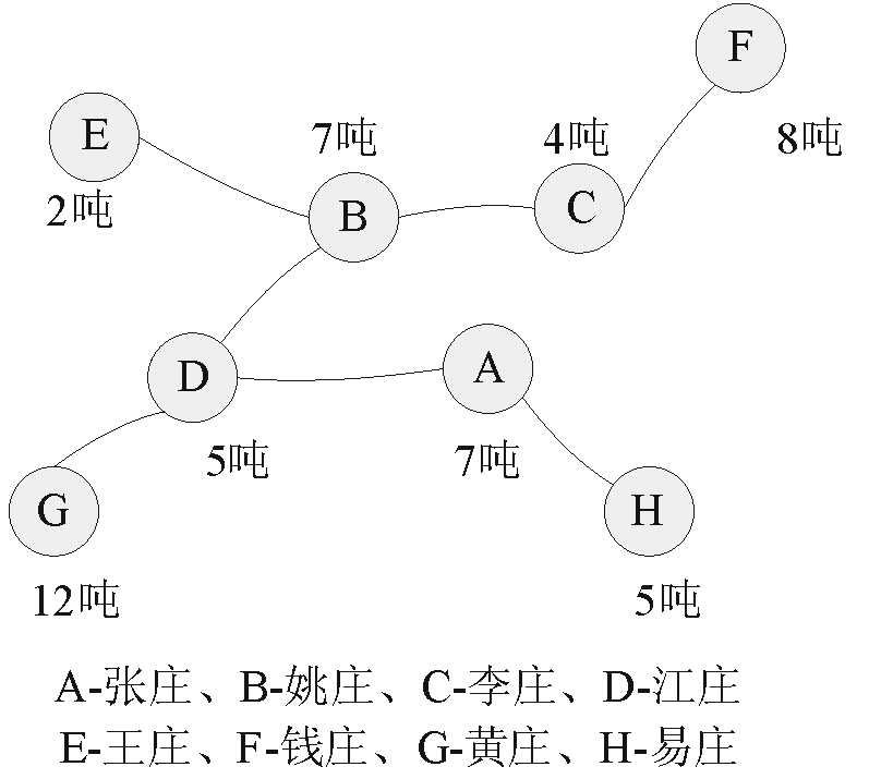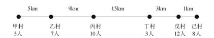 【例8】如图,姚乡长召集甲、乙、丙、丁、戊、己六个村的干部参加会议,这六个村子每两个村子之间的间隔和每个村参加会议的人数如图所示。请问姚乡长应该在哪个村子召集会议可以使所有参加会议的人所走路程和最小?()