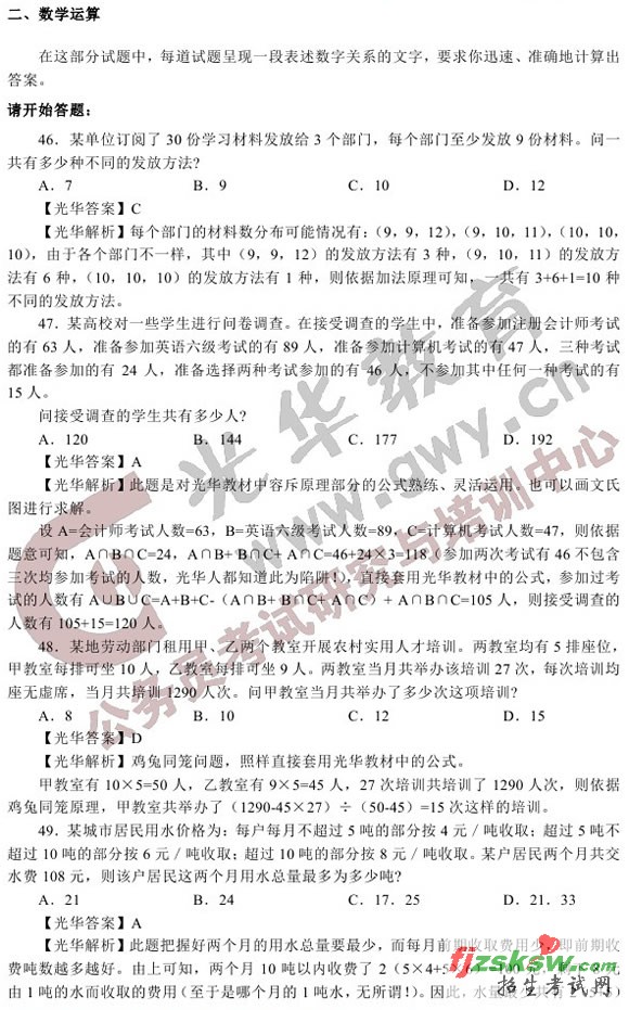 [组图]2010年国家公务员考试行测数量关系试题及答案