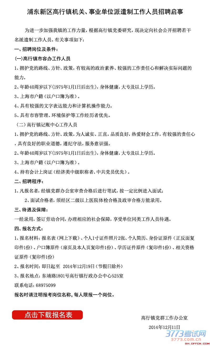 [图文]上海浦东新区事业单位2014下半年招聘派遣制工作人员