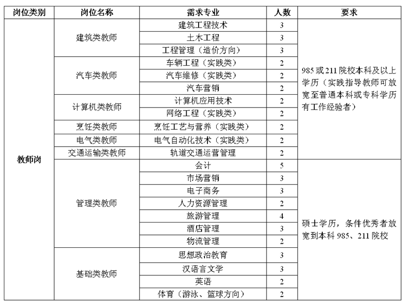 因学校发展需要,现面向全国招聘以下英才