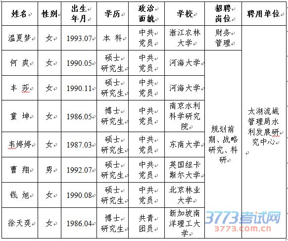 [图文]2016上海太湖流域管理局水利发展研究中心拟聘用名单公示