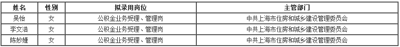 根据《上海市事业单位公开招聘人员暂行办法》(沪人社专发[2009]45号)以及2016年事业单位招录优秀选调生工作要求,拟录用以下人员,现将有关情况予以公示。公示期间,如有异议,请向我单位反映。