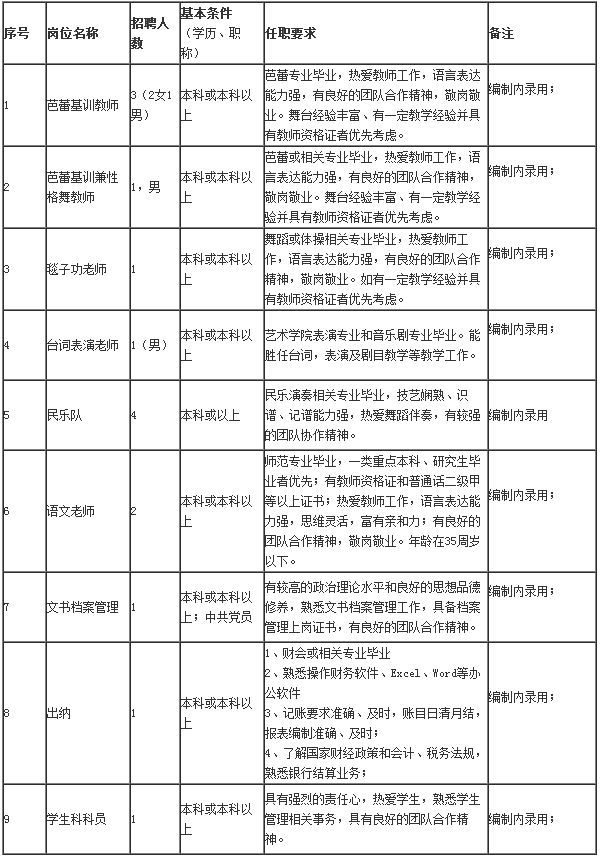 上海戏剧学院附属舞蹈学校(原上海市舞蹈学校)为国家级重点中等专业学校 。为适应学校发展,根据《上海市事业单位公开招聘人员暂行办法》规定,现面向社会公开招聘教师及其他专技人员14名,管理人员1名。