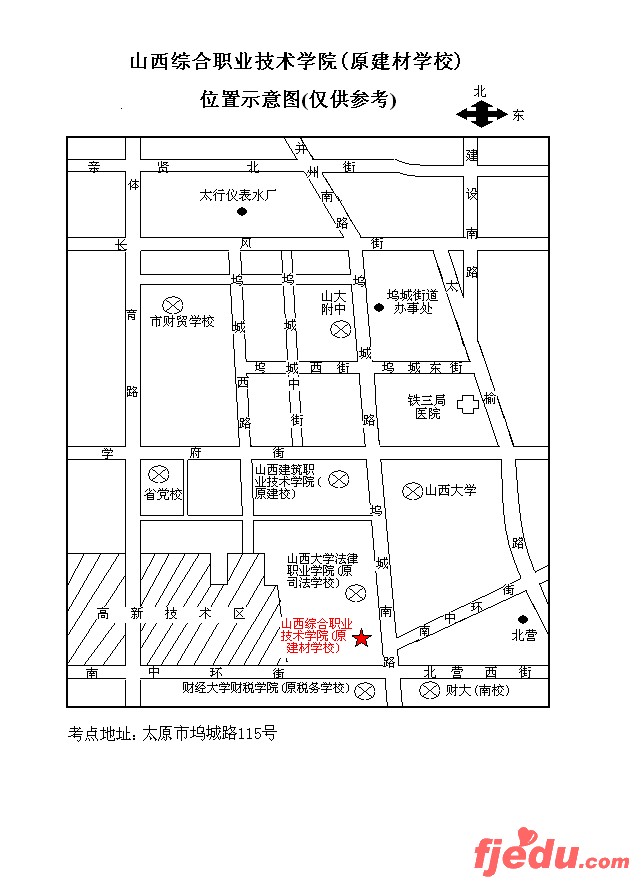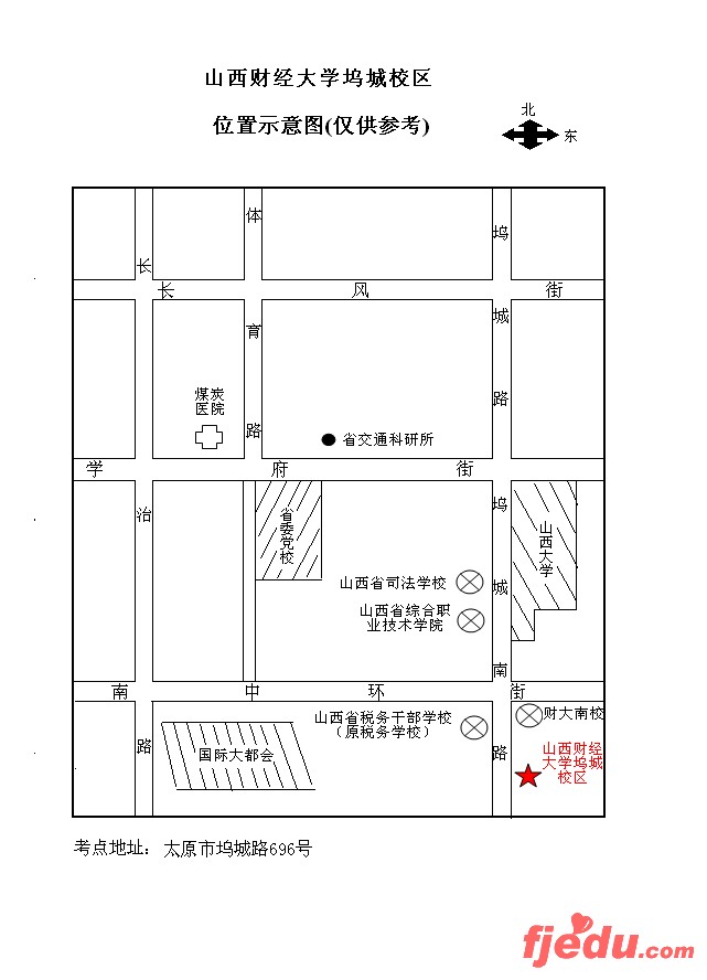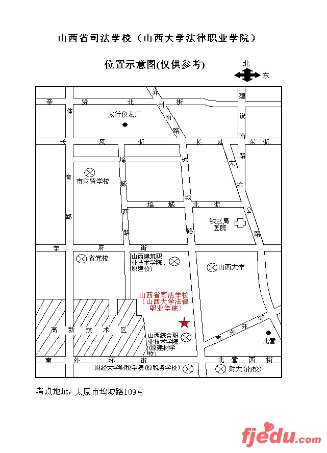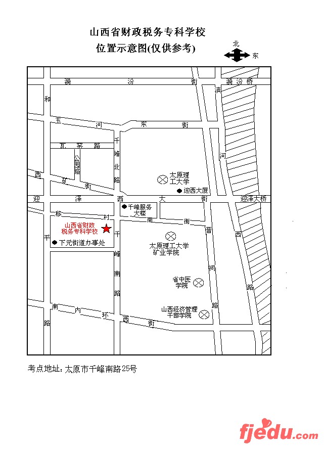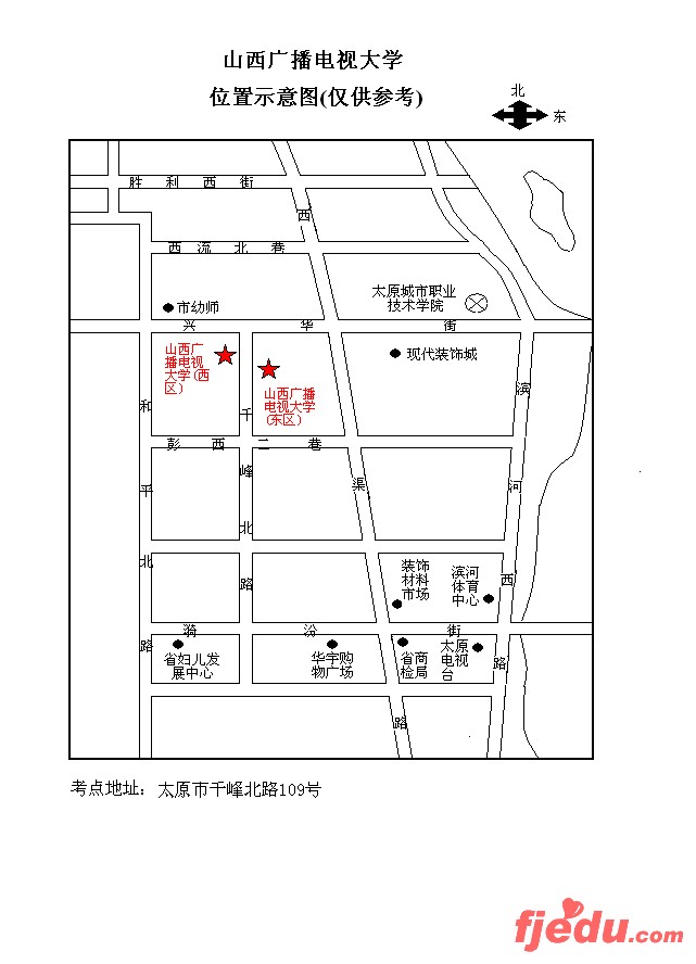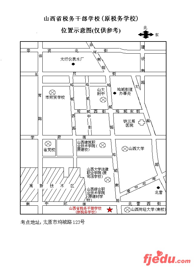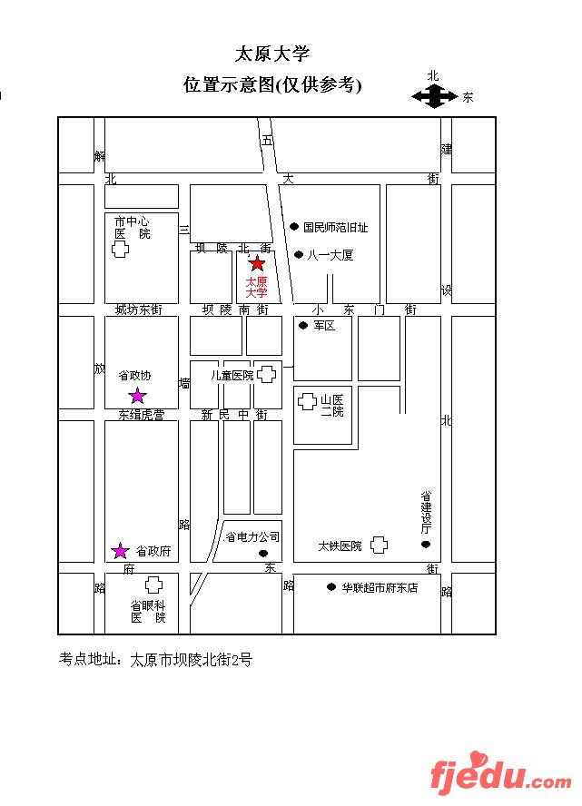注意事项:1、考点排序不分先后; 2、请广大考生按准考证所载时间、地点和要求参加考试; 3、本考点位置示意图仅供参考,请以实际地理位置为准; 4、因太原市近期道路改造,请考生务必于考前一天熟悉考点路线合理安排赴考时间。 |
