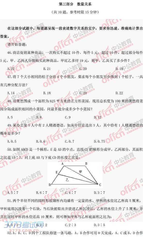 [组图]2014下半年四川公务员考试行测真题-数量关系