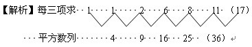 【例2】1, 1, 2, 6, 8, 11, ( )