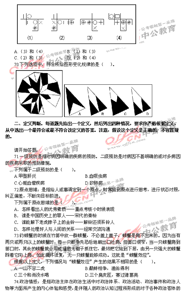 [组图]2010年国家公务员考试行测试题卷答案(模拟)