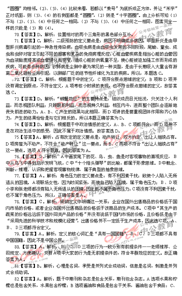 [组图]2010年国家公务员考试行测试题卷答案(模拟)