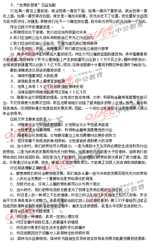 [组图]2010年国家公务员考试行测试题卷答案(模拟)