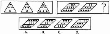 解法2:替代法。第一组第一个图形的下面两层元素的“—”和“□”与第二组图形的“l”和“•”一一对应,所以选择A。