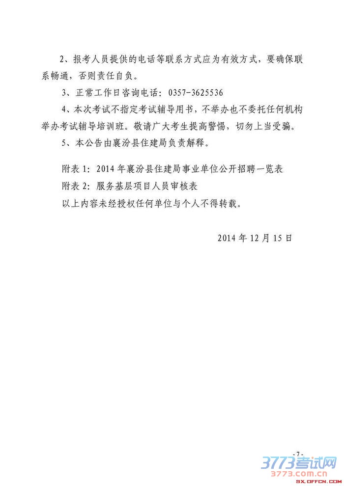 [组图]2014年山西襄汾县住建局招聘事业单位工作人员公告