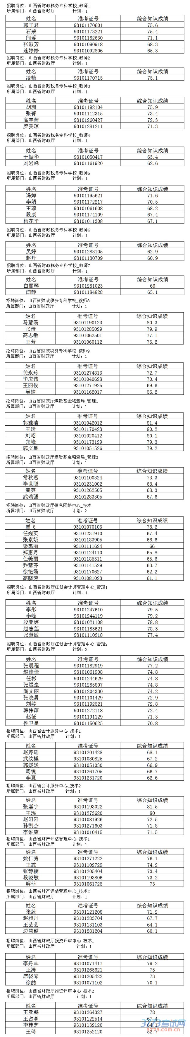 [图文]山西省财政厅事业单位2015招聘资格复审名单