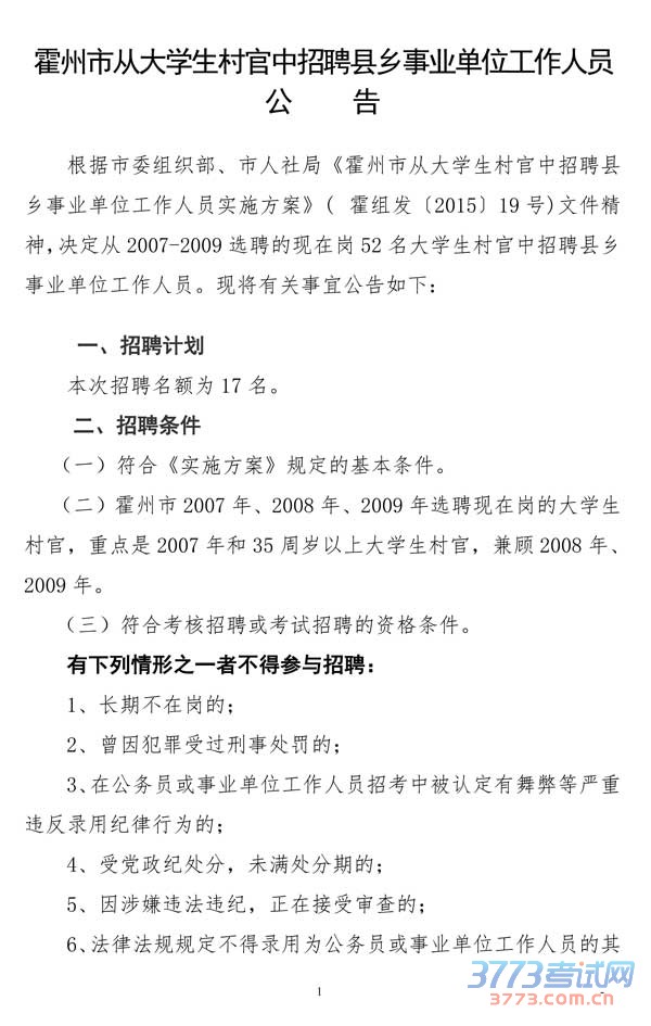 [组图]2016山西霍州市县乡事业单位招聘公告(从大学生村官中)