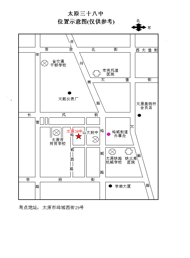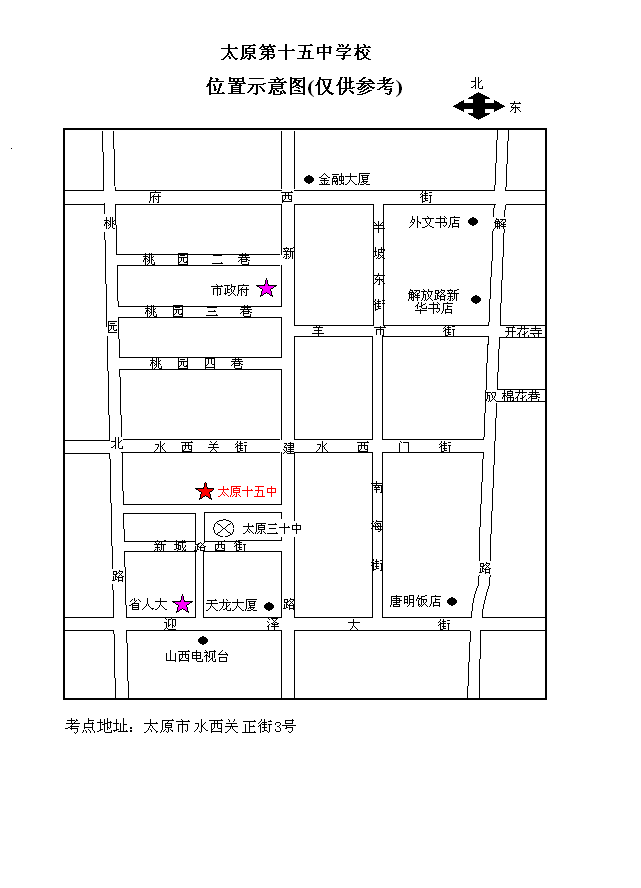 山西省2009年省直事业单位公开招聘人员 笔试考点位置分布示意图