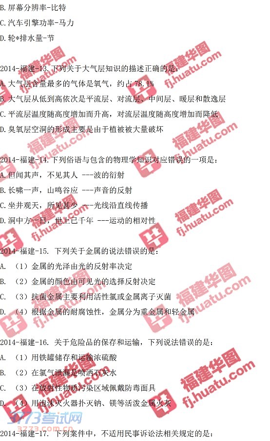 [组图]2014年福建省秋季公务员考试真题-常识判断