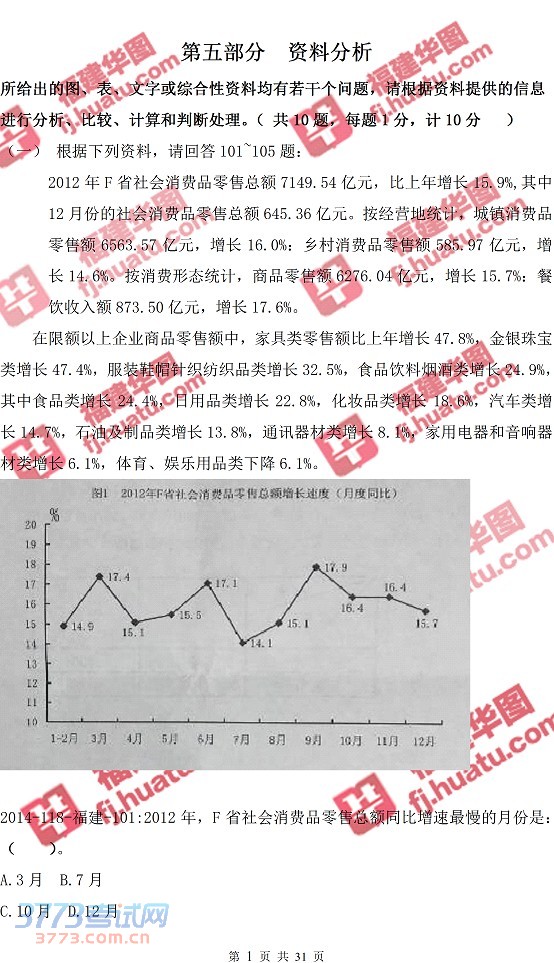 [组图]2014年福建省事业单位(11.8联考)招聘真题:资料分析真题