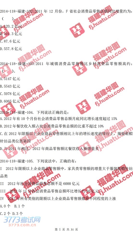 [组图]2014年福建省事业单位(11.8联考)招聘真题:资料分析真题