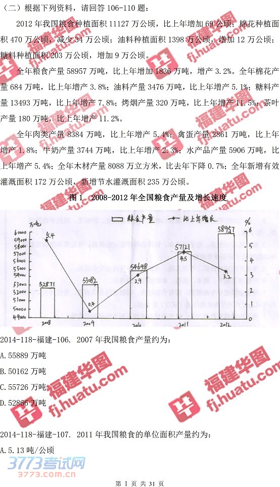 [组图]2014年福建省事业单位(11.8联考)招聘真题:资料分析真题