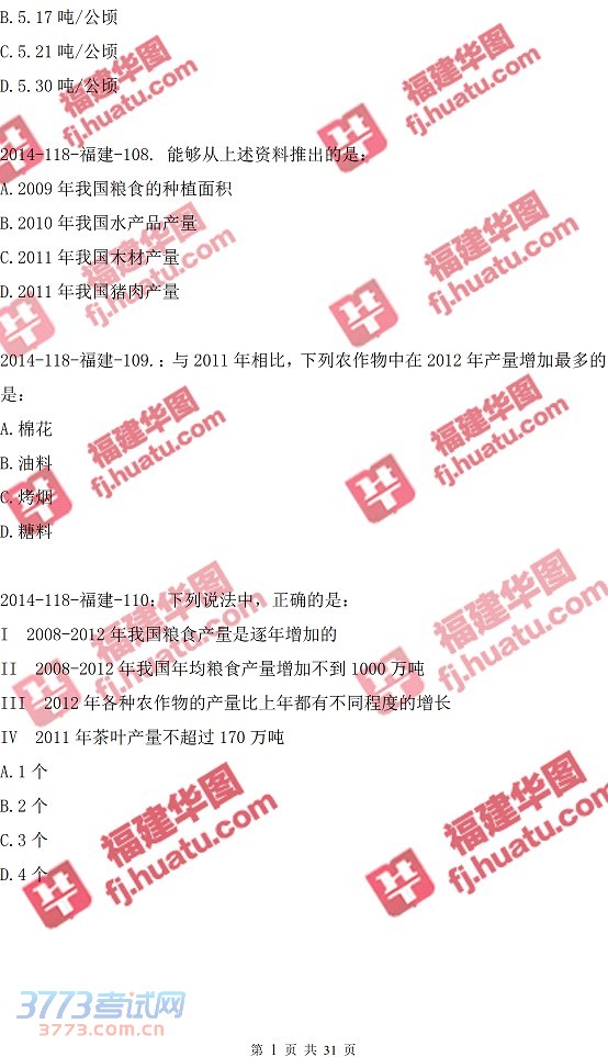 [组图]2014年福建省事业单位(11.8联考)招聘真题:资料分析真题