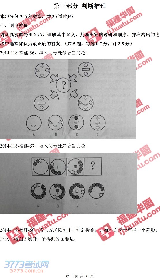 [组图]2014年福建省事业单位(11.8联考)招聘真题:判断推理真题