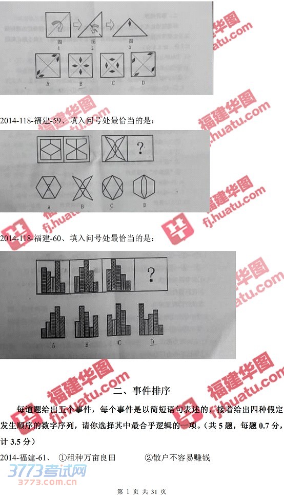 [组图]2014年福建省事业单位(11.8联考)招聘真题:判断推理真题
