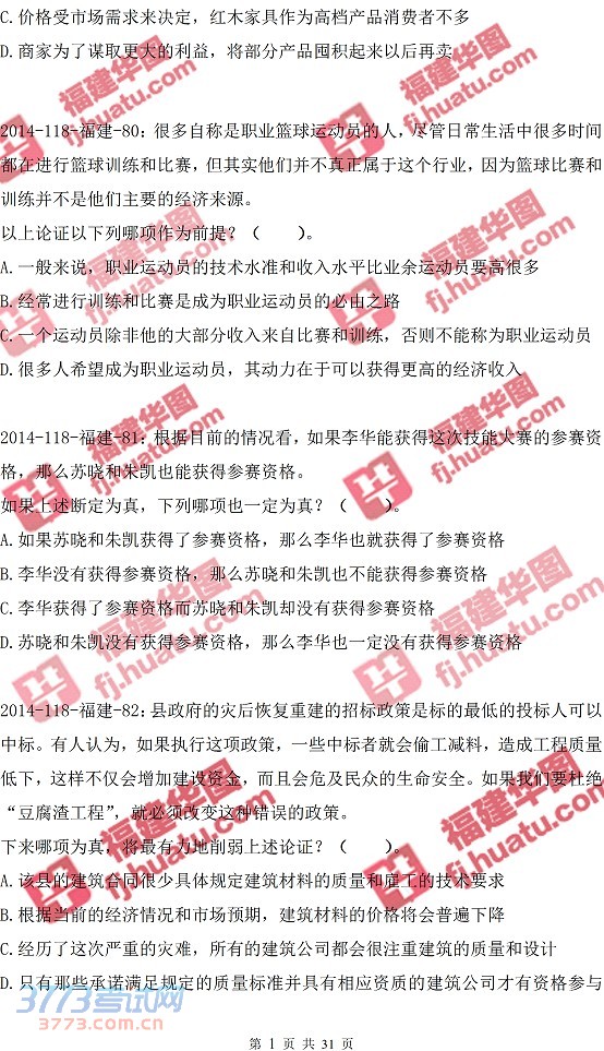 [组图]2014年福建省事业单位(11.8联考)招聘真题:判断推理真题