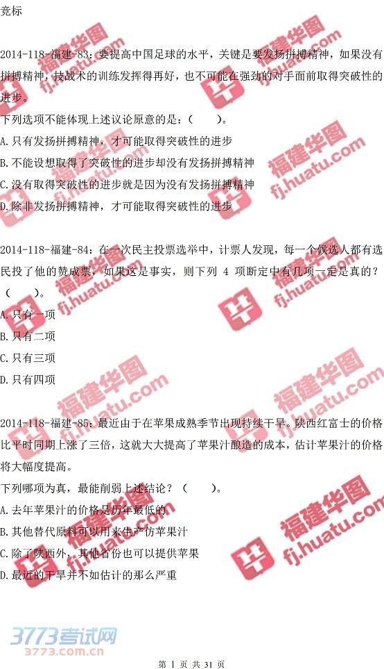 [组图]2014年福建省事业单位(11.8联考)招聘真题:判断推理真题