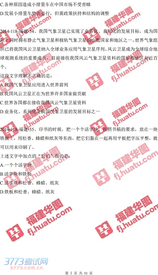 [组图]2014年福建省事业单位(11.8联考)招聘真题:言语理解真题