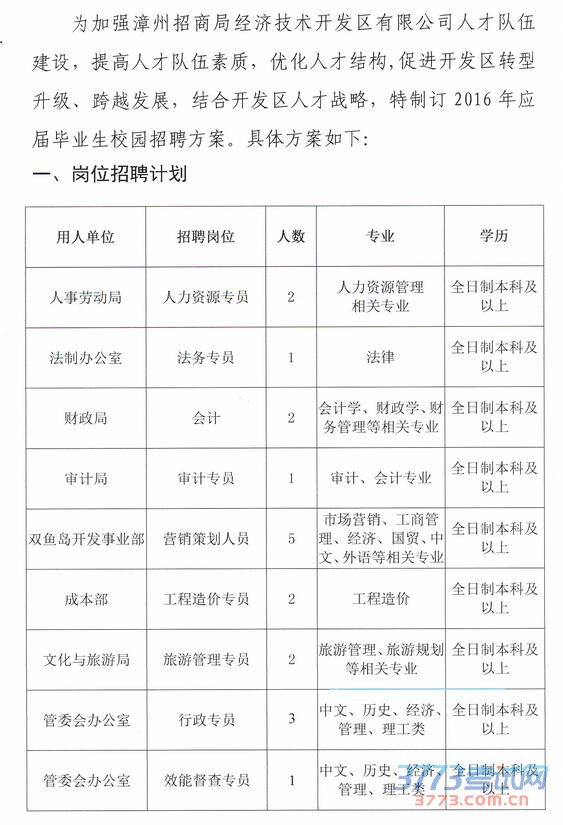 [图文]2016福建漳州招商局经济技术开发区校园招聘公告