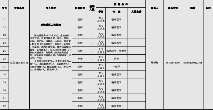 [组图]乌鲁木齐市达坂城区2016年卫生系统事业单位招聘职位表